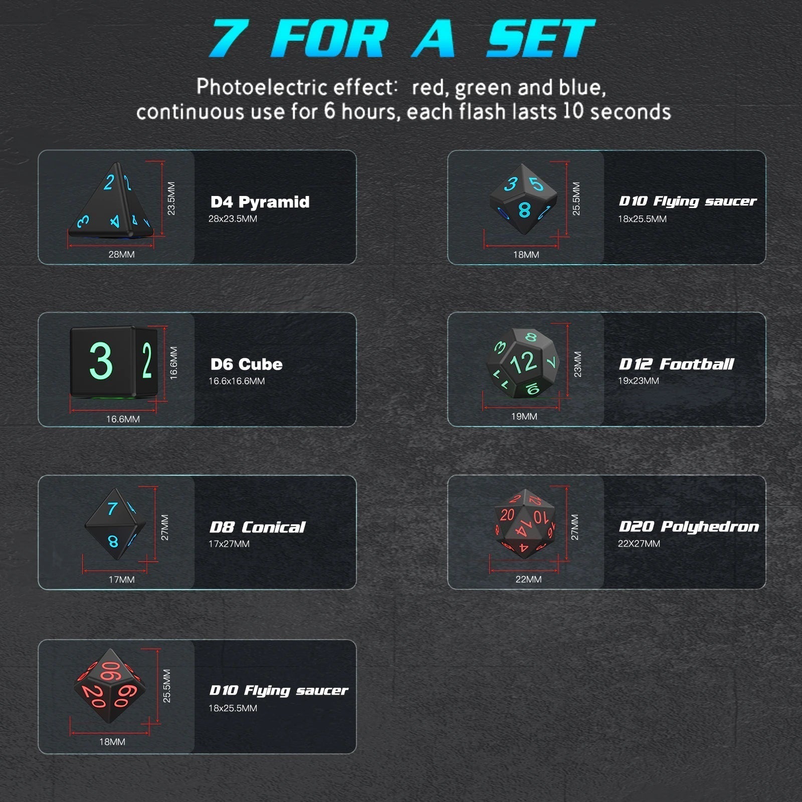 7PCS LED Light-emitting Dices Set For RPG Role Playing Table Games