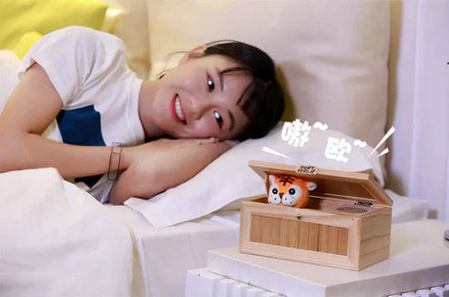 - 【Features】: A very ordinary looking wooden box. Every time a button is touched, a little tiger stretches out his hand and then closes the box. With 20 different action modes, it is very interesting.