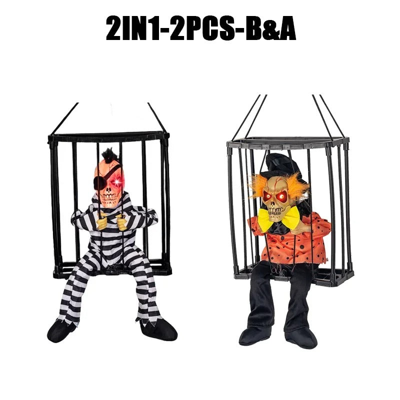 Prisoner Ghost In Cage Scary Skull Prop Electric Skeleton