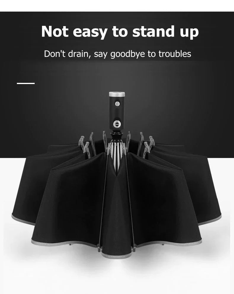 REFLECTIVE STRIPE REVERSE LED LIGHT AUTOMATIC UMBRELLA