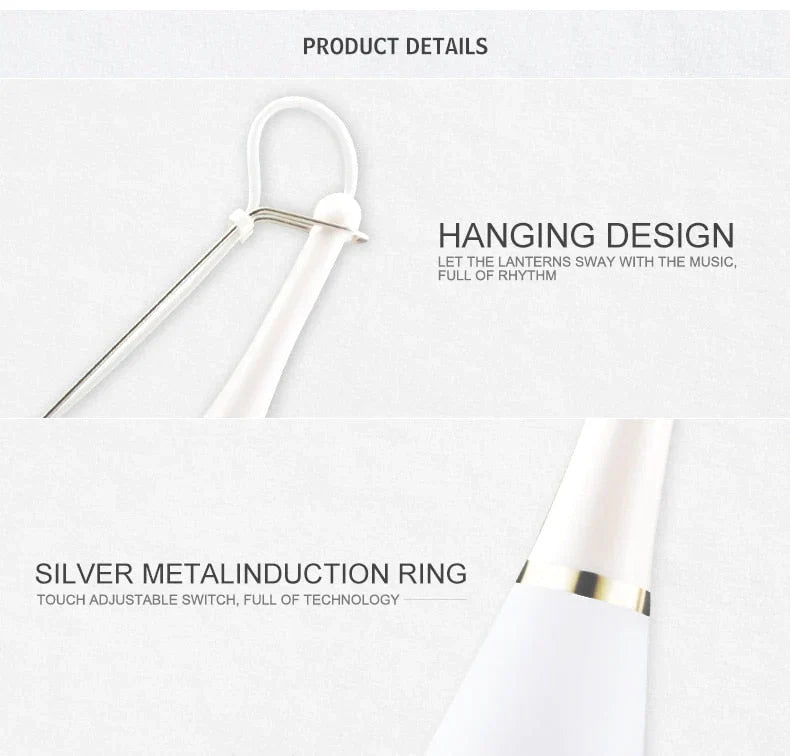 It is suitable for all products audio products to play sound, such as Mp3, Mp4, computer, mobile phone and so on. When playing music, there is a colorful light below the chandelier that will follow the rhythm of the music. Touch the metal ring to turn the desk light on or off. Continuously touch for more than 3 seconds to adjust the brightness of the light.