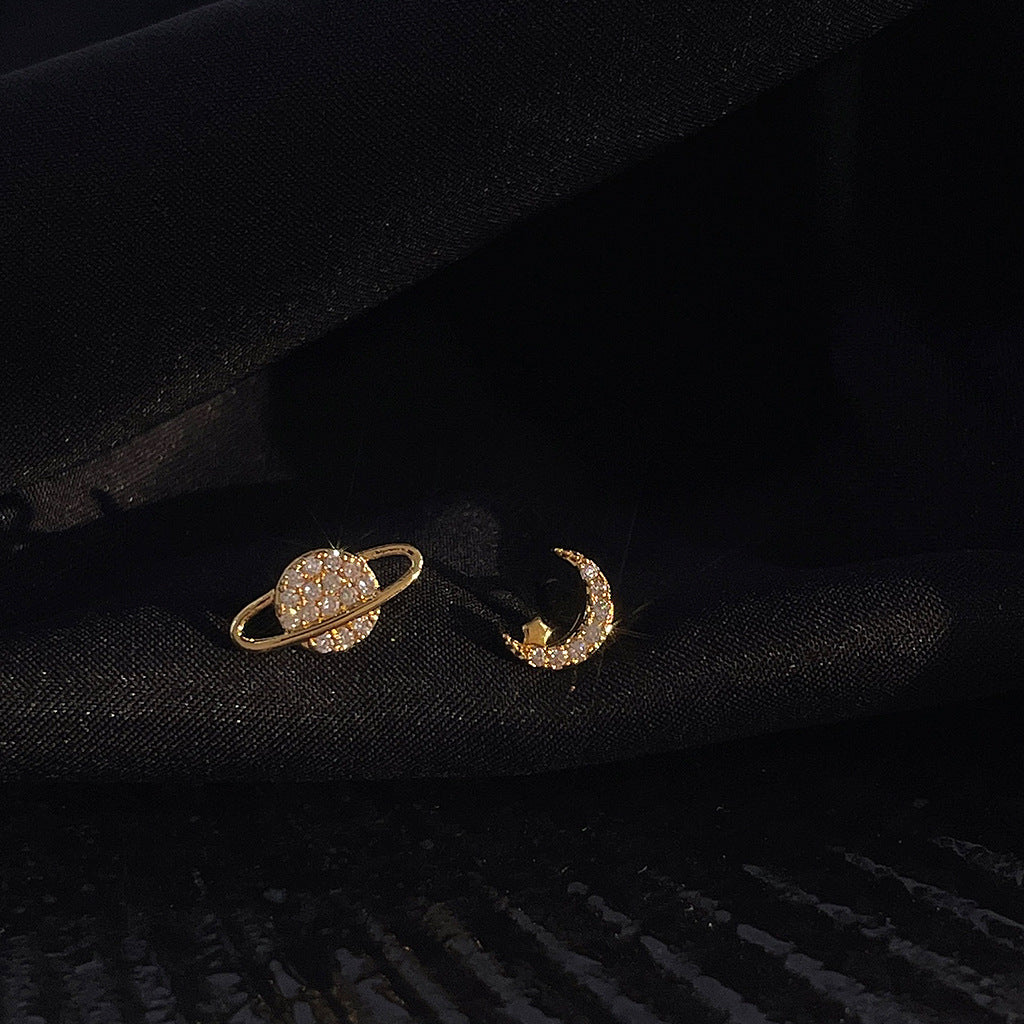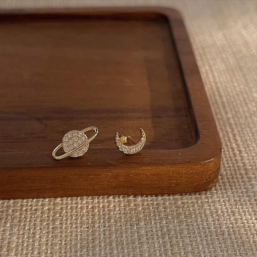 Zircon Star Moon Mini Earrings for Women Cute Korean Planet Asymmetric Ear Studs Piercing Earrings Jewelry Gifts